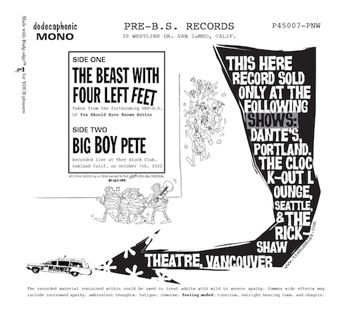 From the forthcoming Pre-B.S. LP "You Should Have Known Better." Only sold at Dante's, Portland; The Clock-Out Lounge, Seattle, and the Rickshaw Theatre, Vancouver.
